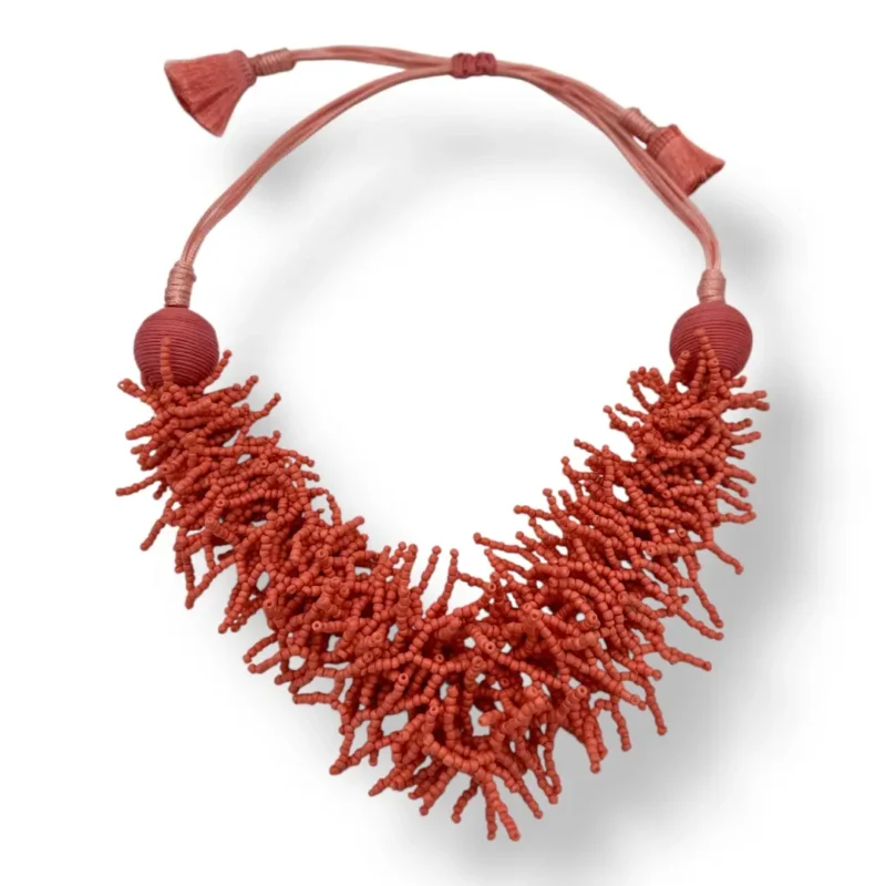 Collana artigianale in perline color corallo, ispirata ai fondali marini: vivace, volumosa e regolabile per ogni scollo.