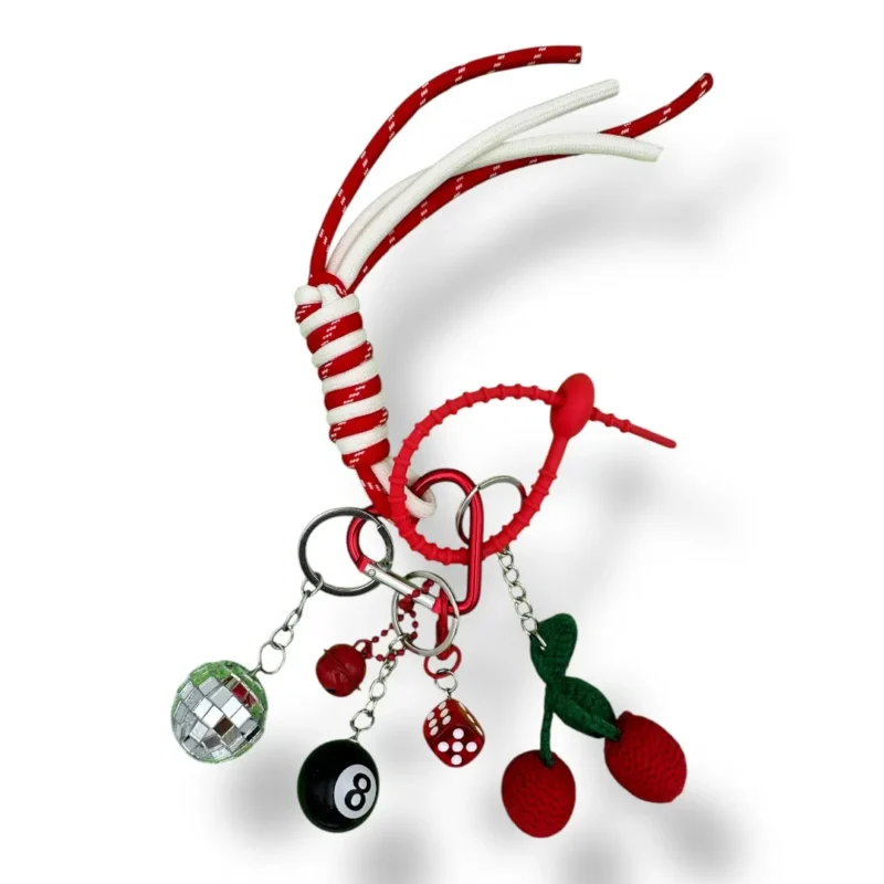 Porta con te l’energia e il fascino di Las Vegas con questo charm audace! Il rosso acceso, i dadi portafortuna, i cuori e i dettagli brillanti sono il mix perfetto di glamour e fortuna. Con simboli iconici come la pallina da biliardo 8, il dado rosso e una mini sfera disco, questo charm è un tributo a chi ama osare e brillare. Perfetto per chi vuole aggiungere un tocco di lusso e fortuna alla propria borsa, zaino o portachiavi.