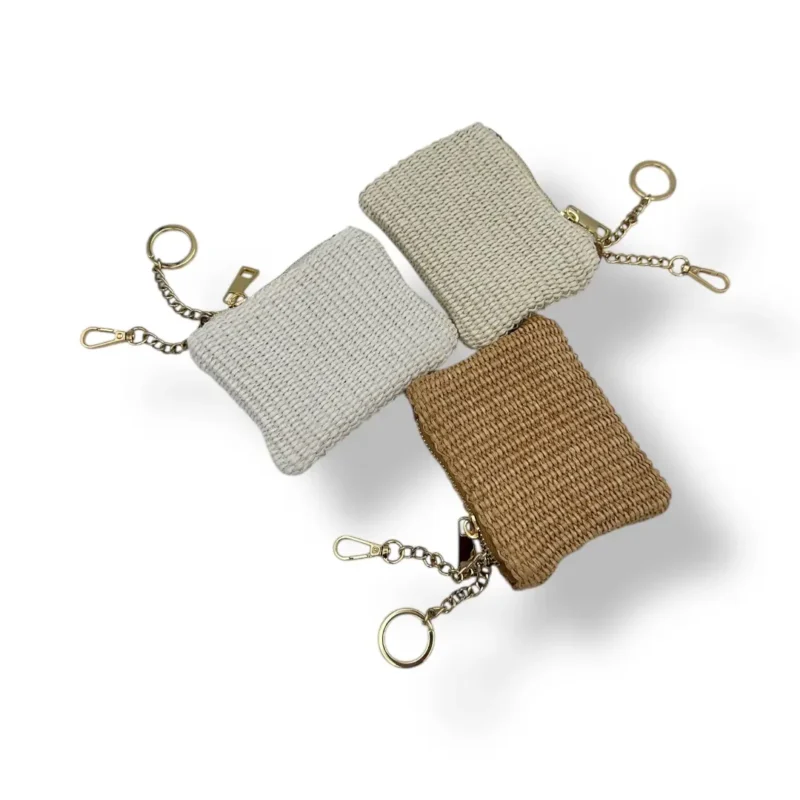 Portamonete Lido: pratico e stiloso, in rafia intrecciata. Perfetto per l’estate e per portare con te piccoli oggetti con un tocco di freschezza.