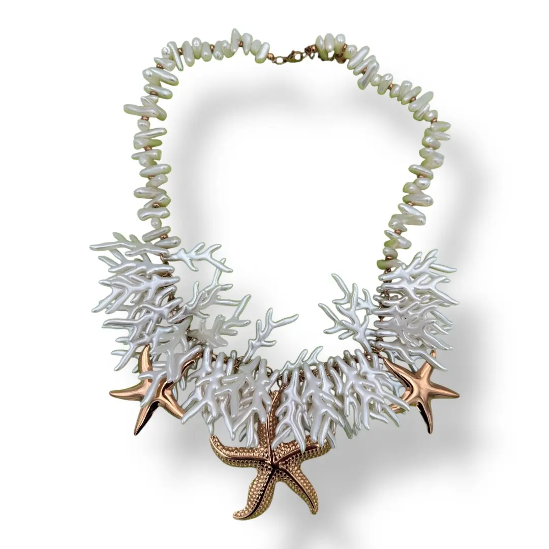 Coral necklace with golden stars, a marine and elegant touch to brighten up your summer look.